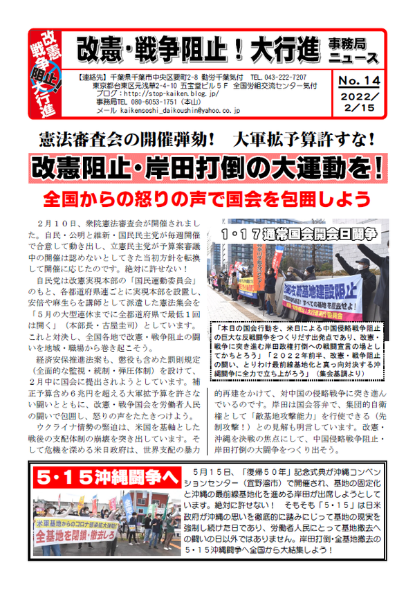 9 月 27 日、岸田内閣は安倍元首相の国葬を閣議決定しましたが、ご存じのように過半数が反対 の意志を示しています。 私たちは、安倍元首相の国葬に反対します。その理由は、国葬が憲法に違反するからだけではな く、安倍元首相の「業績」を賛美することなどできないからです。首相就任期間を通して労働者の賃 金は上がらず、不安定雇用が増やされ、消費税が 2 度も上げられ、生活扶助費は削減され「貧困層」 「準貧困層」が 50%近くにも激増しています。 その上、2006 年には「人格の完成」を目的としていた「教育基本法」を「国のための教育」に 転換し、歴史的事実をねじ曲げ排外主義による差別意識と愛国心教育を強制しました。それは、 2015 年安保関連法の強行採決、憲法改悪へと連なり、日本を戦争する国にしてきました。 また、公務員人事を好き勝手にし、「桜を見る会」では赤木俊夫さんを自死に追いやり、雅子さん の「真実を明らかに」という思いを踏みにじってきました。 さらに、東電福島第 1 原発事故に先立つ 2006 年 12 月津波災害による全電源喪失対策の必要性 を指摘されたにもかかわらず、当時安倍首相は「安全の確保に万全を期しているところである」とい う答弁をしています。この当時安倍首相の答弁によって東電の津波対策を不徹底にしたことが、冷 却剤喪失事故の原因になっています。 彼の「業績をたたえる」ことはできません。これを我慢して黙っていたら、次は何を沈黙させられ るのでしょうか? 岸田首相は安倍氏の「遺志を継ぐ」と、国葬によって反対意見を潰し挙国一致体 制をつくり、改憲・戦争政策を推進しようとする意志は明確です。国葬を許せば次は改憲、戦争を強 行する危険があります。 今回、県内各地で行う街頭宣伝とリンクさせ、宣伝カーによって「国葬反対キャラバン」を行いま す。また、各教育委員会へは「国葬に際して弔意表明を強制しないこと」「はじめての防衛白書」な どによる「国防教育」強制反対などの申入れを計画しています。